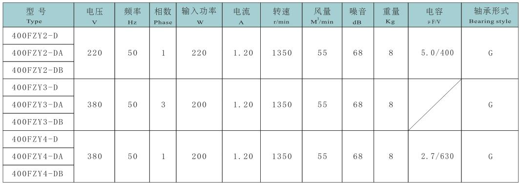 400FZY2-D,3-D,4-D;及DA,DB